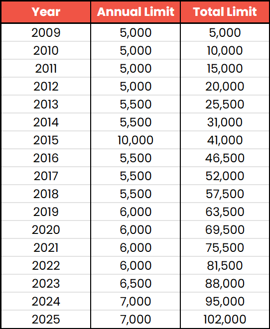 For those who were 18 years old in 2009, the total maximum lifetime contribution limit for them has reached $102,000 as of 2025.